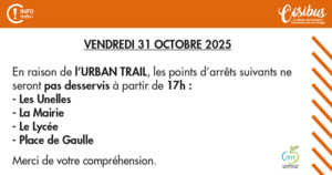En raison de l’URBAN TRAIL, certains points d’arrêts ne seront pas desservis à partir de 17h